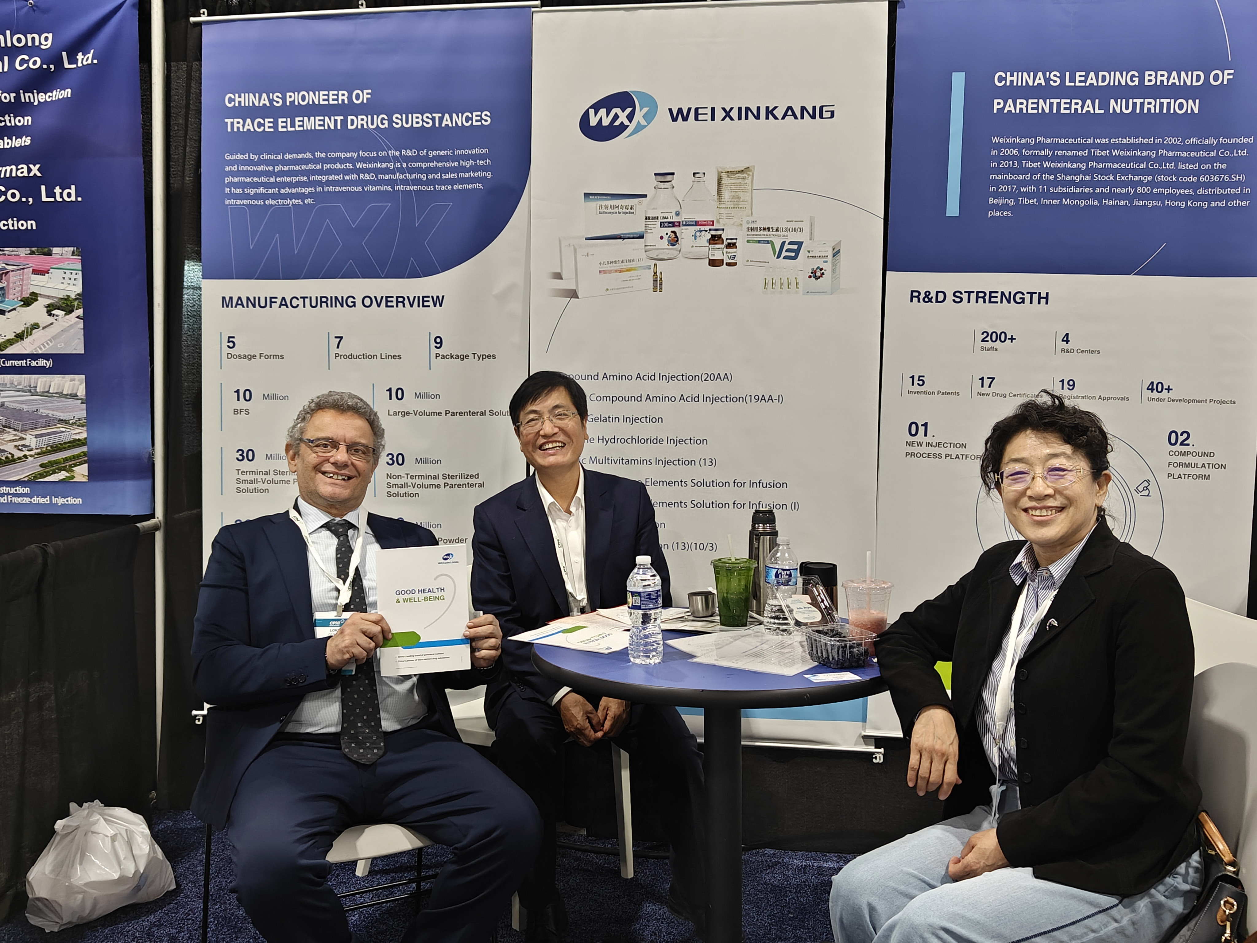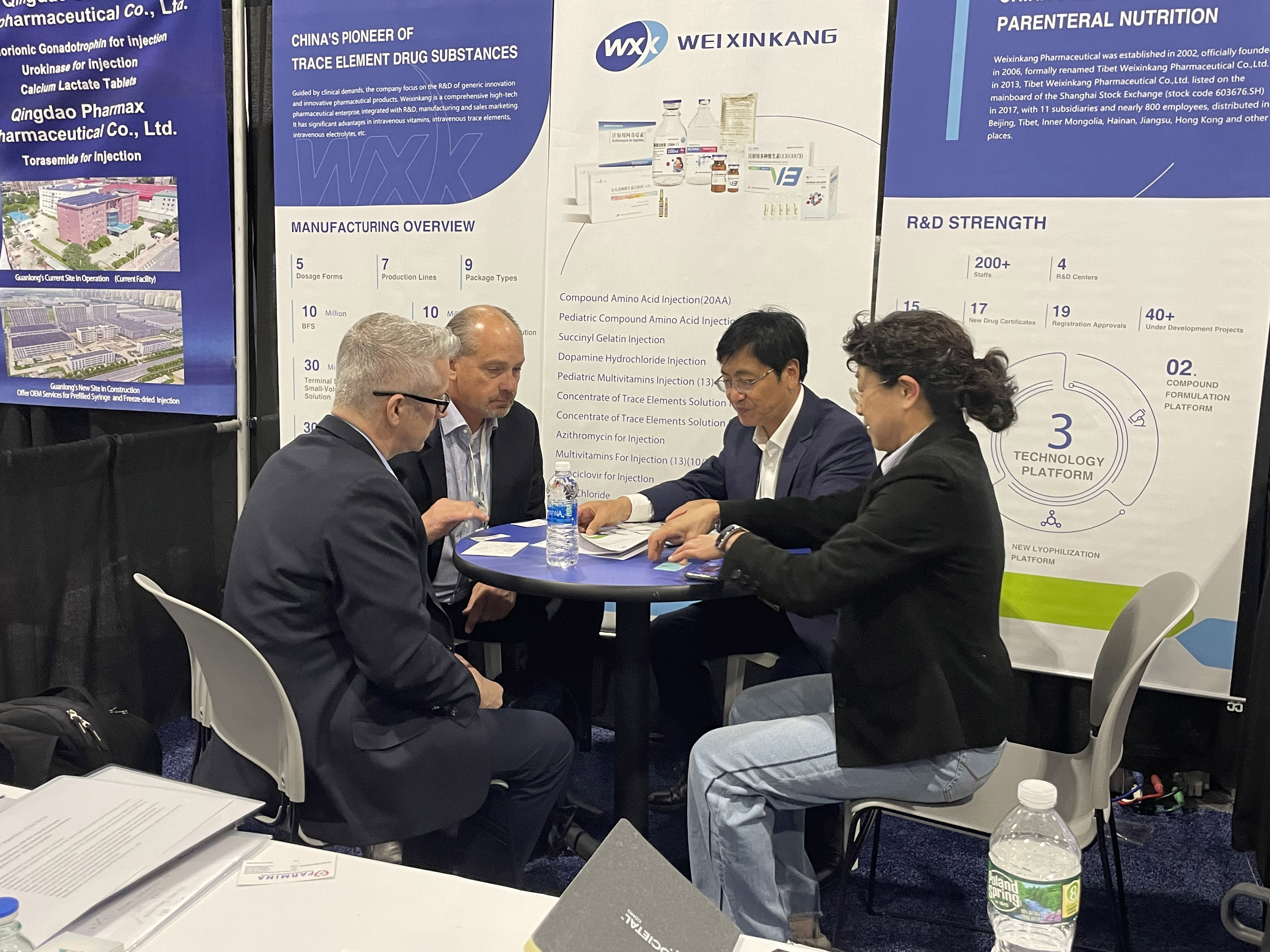 卫信康国际业务团队携多种维生素注射液(13)(10/3)、小儿多种维生素注射液(13)、多种微量元素注射液、复方氨基酸注射液(20AA)、氯化锌、亚硒酸钠等公司制剂与原料药领域核心产品首次参加北美医药展会,与制药行业的专业人士和潜在合作伙伴深入交流,探讨国际化业务合作新机遇。