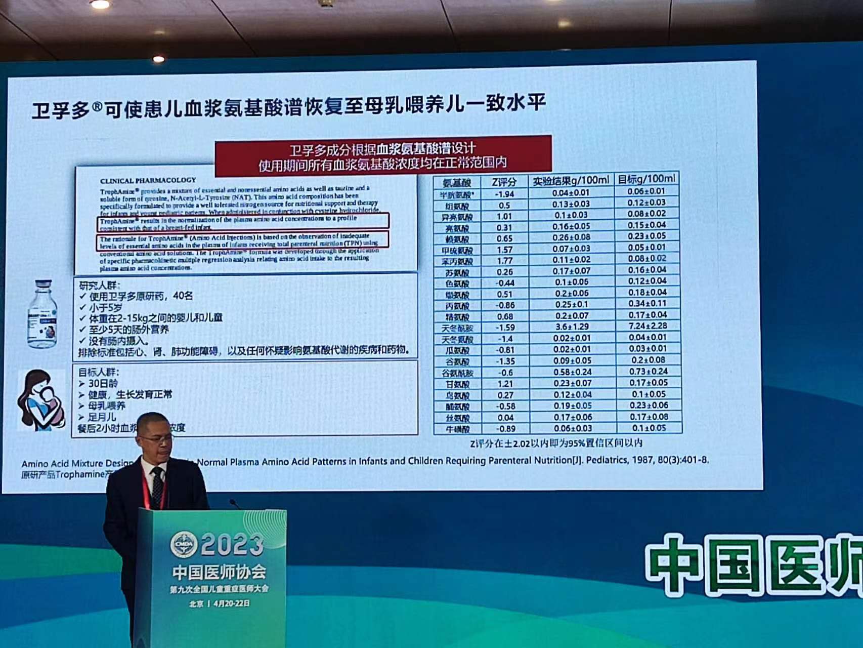 卫信康医药携卫孚多®小儿复方氨基酸注射液(19AA-Ⅰ)及卫优佳®小儿多种维生素注射液(13),受邀参与本次大会,并有幸邀请到解放军总医院第七医学中心儿童医学部重症医学科洪小杨教授分享《氨基酸与多种维生素在危重症患儿肠外营养支持(PN)中的应用》。