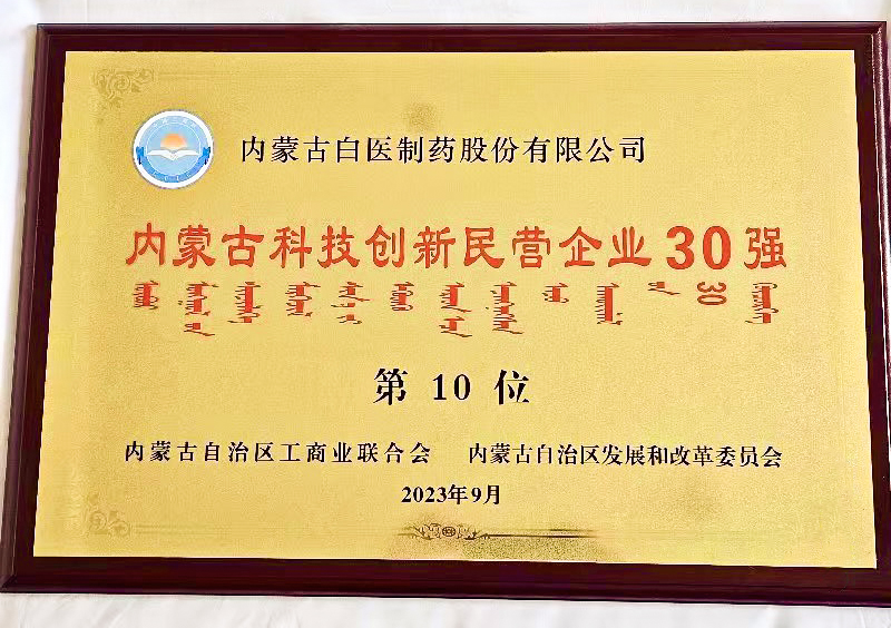 【喜讯】卫信康所属白医制药荣获“2023内蒙古科技创新民营企业30强”